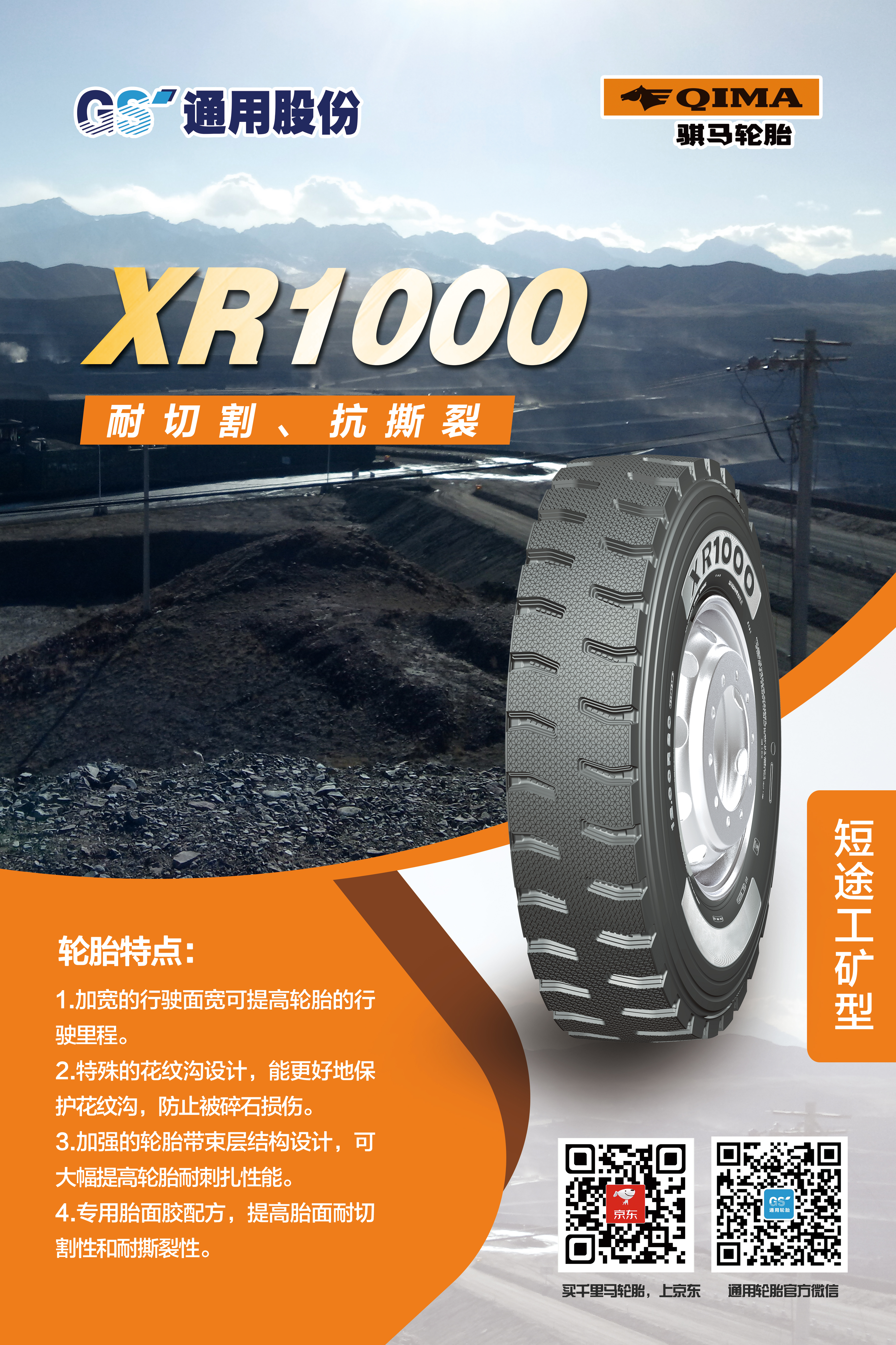 眾所周知,自2007年自主研發(fā)的第一代短途礦山胎問世,通用股份在行業(yè)率先開創(chuàng)了礦山胎這一品類,充分滿足礦區(qū)特殊使用條件和特點(diǎn),備受中國礦山車司機(jī)的喜愛。近年來,通用股份立足國內(nèi)礦區(qū)路況特點(diǎn),對輪胎花紋、配方、結(jié)構(gòu)等進(jìn)一步升級,重磅推出礦山胎傳承之作——XR1000、XR2000。兩款輪胎均擁有全新的外觀設(shè)計、獨(dú)特的結(jié)構(gòu)設(shè)計、高耐磨配方設(shè)計。全新胎面配方的應(yīng)用,大幅提升胎面耐刺扎性能。加強(qiáng)的輪胎帶束層結(jié)構(gòu)設(shè)計,大幅提高輪胎耐扎刺性能。加寬的行駛面,有效提高輪胎行駛里程。相關(guān)數(shù)據(jù)表明,相比同類產(chǎn)品,耐久時數(shù)提升20%,胎圈耐久提升30%,是廣大礦山胎用戶的信心之選。