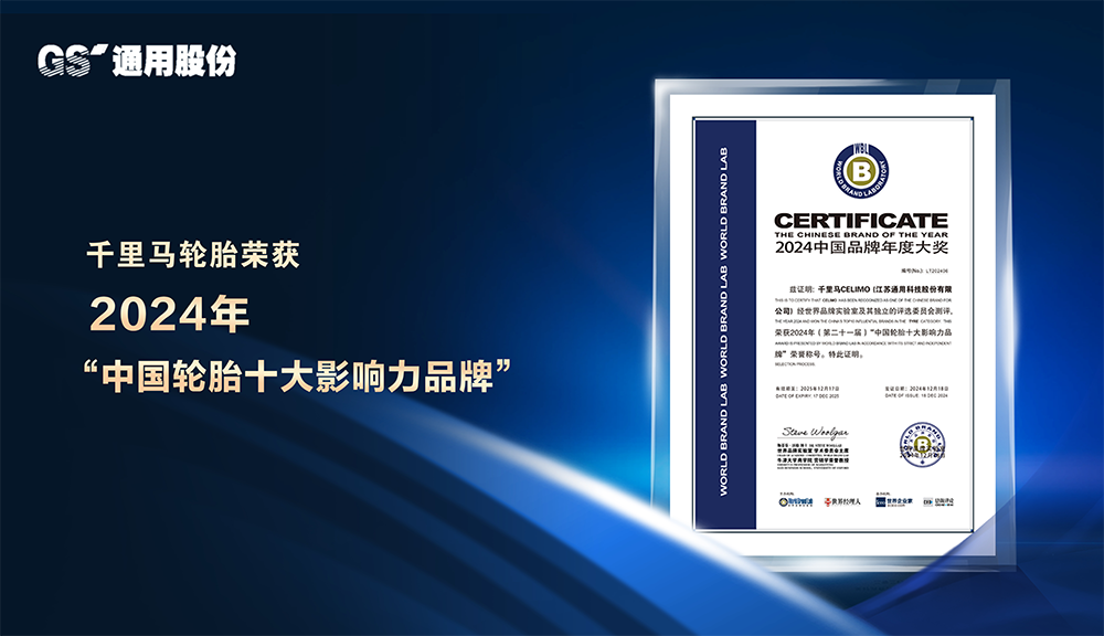 12月18日,通用股份旗下千里馬輪胎連續(xù)六年榮獲“中國輪胎十大影響力品牌”稱號。這項(xiàng)殊榮來自2024年第二十一屆“中國品牌年度大獎”評選,該獎項(xiàng)由世界品牌實(shí)驗(yàn)室頒發(fā),旨在表彰在中國市場具有突出影響力的品牌。