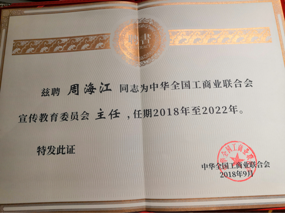 周海江擔(dān)任全國(guó)工商聯(lián)宣傳教育委員會(huì)主任