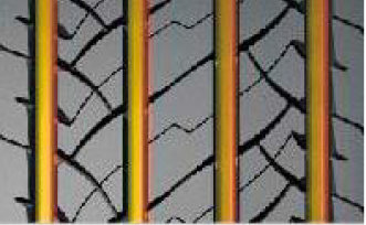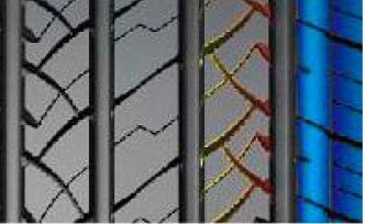 增加胎面的咬合邊,提高剎車和濕地安全性能。切割花紋防止花紋塊在剎車時發(fā)生卷邊效應,增大接地面積。
